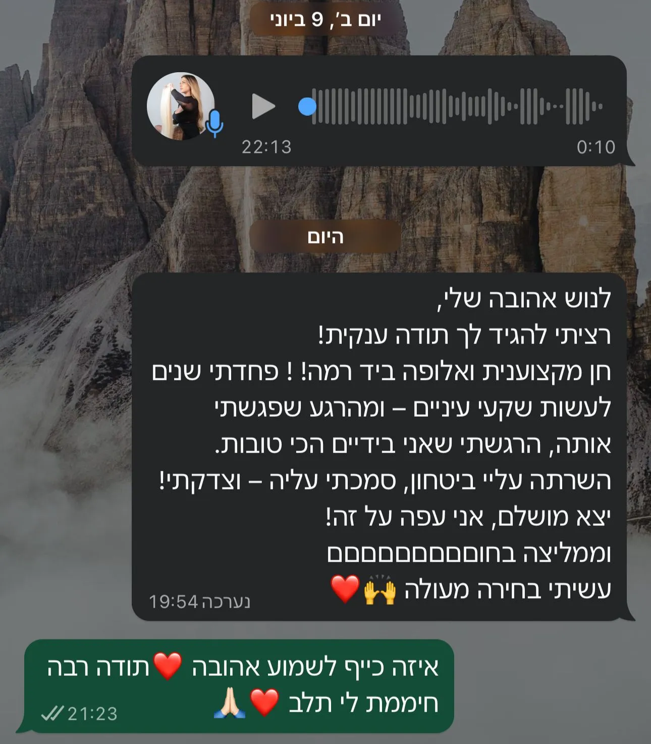 שירות מותאם אישית ואווירה תומכת, שיבטיחו לך חוויה נעימה ובטוחה.
